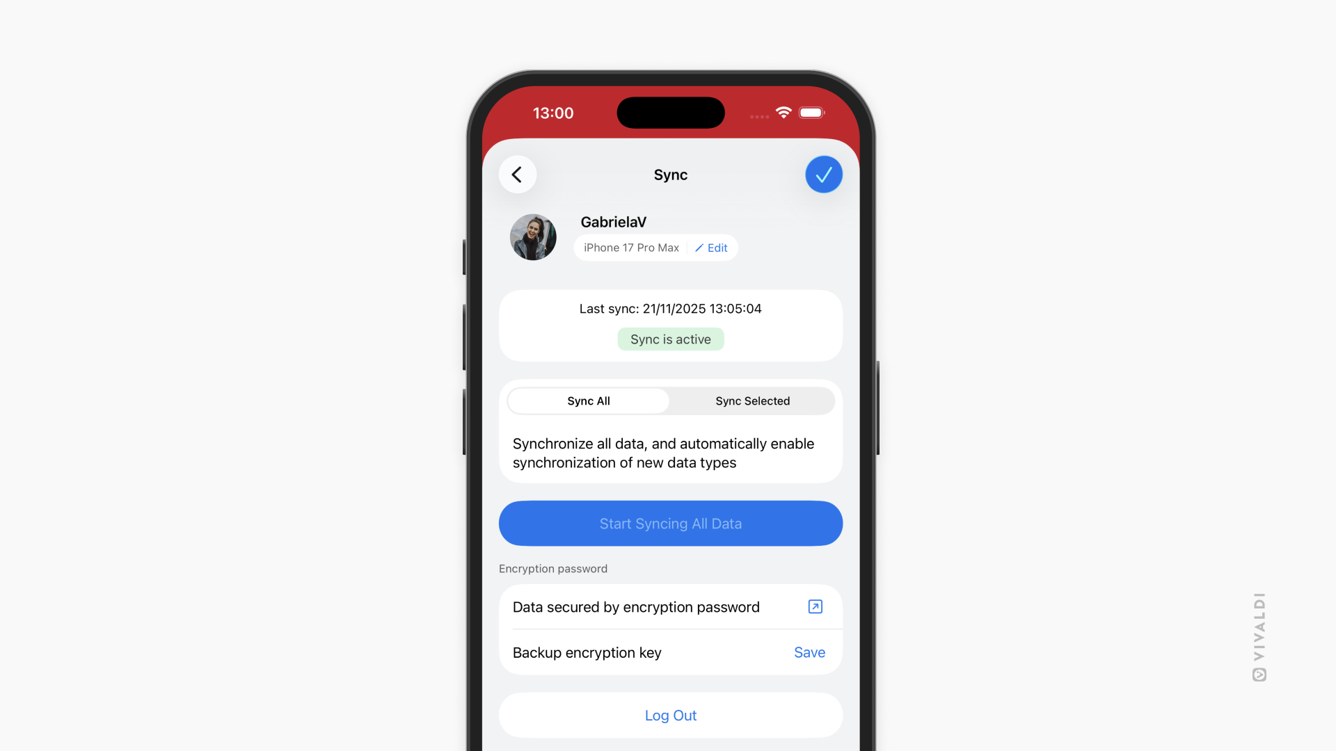 Vivaldi menu > Settings > Sync. - Enter the encryption password.